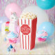 Red and white striped movie / carnival popcorn box with funny stop sign quote stop pop and roll.