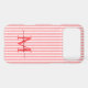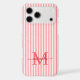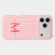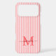 Protect your phone in style with this elegant personalized phone case, designed for a chic and feminine look. Featuring a soft red and white striped background, the back of the case showcases your monogram initial and name in a fancy script font, creating a timeless and sophisticated design.