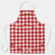A classic red and white gingham chef's apron with text and graphics.