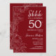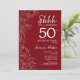 Red White Surprise 50th Birthday Invitation. Minimalist modern feminine design features botanical accents and typography script font. Simple floral invite card perfect for a stylish female surprise bday celebration. Printed Zazzle invitations or instant download digital printable template.