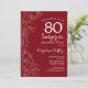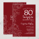 Red White Floral Surprise 80th Birthday Party Invitation. Minimalist modern design featuring botanical accents and typography script font. Simple floral invite card perfect for a stylish female surprise bday celebration. Can be customised to any age. Printed Zazzle invitations or instant download digital printable template.
