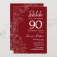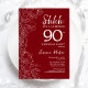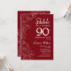 Red White Surprise 90th Birthday Invitation. Minimalist modern feminine design features botanical accents and typography script font. Simple floral invite card perfect for a stylish female surprise bday celebration. Printed Zazzle invitations or instant download digital printable template.