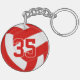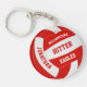 This team colours volleyball themed keychain for boys or girls features a realistic looking red and white volleyball upon which you can customise the player's name, jersey number and court position, plus school or club name and mascot name in a varsity letter style font - by katz_d_zynes