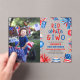 The Red, White & Two 4th July 2nd Photo Birthday Party Invitation is a vibrant and patriotic invitation designed for a child's second birthday celebration on the 4th of July. The theme combines the iconic colours of the American flag—red, white, and blue—with the excitement of turning two years old. The invitation likely features playful elements such as stars, stripes creating a festive and cheerful atmosphere. It invites guests to join in the double celebration of Independence Day and the child's special day, promising a fun-filled event with lots of joy and memorable moments.