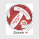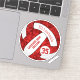 This red and white volleyball sticker with custom team and school mascot name features a floral kaleidoscopic pattern blended with the red volleyball panels and an artsy abstract swirl pattern blended with the white panels - her name and team name are customisable, as is her jersey number on a tiny white volleyball - by katz_d_zynes