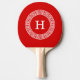 Red Wht Greek Key Rnd Frame Initial Monogram Ping Pong Paddle
