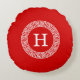 Red Wht Greek Key Rnd Frame Initial Monogram Round Cushion