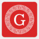 Red Wht Greek Key Rnd Frame Initial Monogram Square Sticker