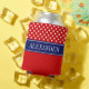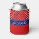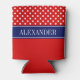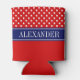Red Wht Polka Dot CB Navy Name Monogram Can Cooler
