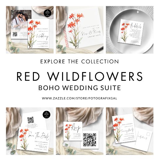 Red Wildflowers We Do QR Code Wedding All In One Invitation