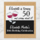 This funny 50th birthday wine bottle label features a graphic of two glasses of red wine and the text: (name) is turning 50 and wining about it! This label offers custom text for you to personalise with the birthday person's name and age. The background border colour is gold and can be customised to any available colour. The border is accented with a subtle swirly pattern.