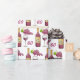 Watercolor art of red wine bottle, bunch of grapes and glass pattern 60th Birthday gift wrap.
