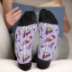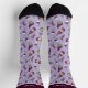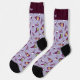 Red wine. Bottle, glass, corkscrew and grapes. Custom background colour. Custom top stripe colour. Custom text on each sock.