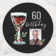 Rustic Red Wine Glass Rose Watercolor Photo 60th Birthday Party Confetti. The design has watercolor red wine glass, roses and twigs on a black background. The text is fully customisable - personalise it with your photo and age.