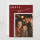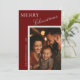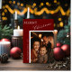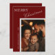 Red With Silver Script Family Photo Card. Celebrate the season with this elegant red with silver Christmas card, featuring a family photo on the right. The design is portrait style and includes script calligraphy, with a festive red border on two sides of the image with matching red type for a cheerful touch. Customise the card with your own photo, family names, a heartfelt message, and the year, making it a truly personal holiday greeting.