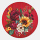 Red Wood Roses and Sunflowers Wedding Classic Round Sticker