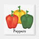 This magnet features Red,Yellow and Green Peppers. Great for the fridge. The TEXT can be customised by editing the TEXT box.