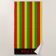 Red, yellow and green Rasta flag coloured striped beach towel. There's customisable text across the bottom where you can add your name or message