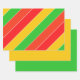 Bright and cheerful striped patterned wrapping paper sheets featuring red, yellow and lime green