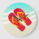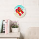 This summer wall clock features a pair of red summer flip flops on an aqua blue and sand colored background. For more summer home decor visit the rest of this shop.