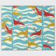 RED YELLOW FLYING CRANES ON WHITE BLUE SEA WAVES WRAPPING PAPER