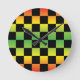 Red Yellow Green Rasta Ombre Chequerboard Round Clock