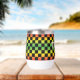 Keep your drinks at the perfect temperature with the Red Yellow Green Rasta Ombre Chequered Monogram Thermal Wine Tumbler. Featuring a bold ombre gradient in classic Rasta colours with a chequered pattern, this tumbler adds a vibrant and cultural touch. Personalise it with your monogram for a unique finish.