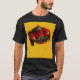 I give wanted to give this a 4 instead of a 5 because these Basic DARK T0shirts run unexpectedly SLIM or Narrow. Which is great if you do not have a potbelly, but I have a paunch. It isn't the shirt's fault that I've got a beer belly. The design and shirt itself is a quality cotton shirt. The color is more of a deep purple, but still a very pretty color. The Basic DARK T-shirts run a bit SLIMMER than the Basic Ts. The neck is a fraction narrower (or seems to be narrower) also. I'm a paunchy middle-aged woman and my neck is 12 inches (31cm) thick and the neckline fell about the same as in the photo of the man, and I had the desire to tug it a bit. So if you're a thick necked man or like loose shirts, be aware these are slimmer shirts. Once I get rid of my lockdown paunch it'll look great. The shirt washed well in cold water with no apparent bleeding. We don't have a dryer, so it hung dry. Did not shrink. Love the colors and the design. The design looks smaller on my shirt than it does on the model on-line. But still, it looks good on the shirt. The printing looks as it does on the model, just the size seems fractionally smaller. Washed garment in cold water, hung dry and design appeared unaffected.