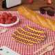 Red Yellow Polka Dot Stripes Pattern Paper Plate