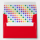 Send out your invitations and cards in style with this cute red custom envelope that features a hand drawn repeating pattern with rainbow coloured fuzzy polka dots on the inside as well as a custom printed return address on the top flap. The return address is customisable. To edit the text, click "personalise this template". There is a rain cloud with rainbow coloured rain drops adorning the back flap above the return address printed in a yellow font.