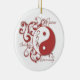 A swirling design of scrolls and yinyang graces this lovely holiday ornament with the words Peace, Balance, and Harmony. This make an excellent gift for those who want to celebrate the holiday spirit but may not be Christian.