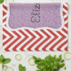 Red Zigzag, Red Chevron, Zigzag Pattern, Your Name Tea Towel