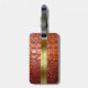 Reddish Brown Reptile Digital Leather Gold Metal Luggage Tag