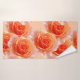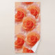 This bath towel set artwork showcases an elegant reddish-orange hued rose floral blending diagonal white pinstripes against a soft pinkish-orange background canvas.