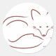 An outline drawing of a curled up red fox, with its head up and looking at you. **Note** Appearing under the red fox illustration, is the taxonomy term "Vulpes vulpes"