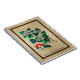 A botanical illustration of the Redhaw Hawthorn (Crataegus sanguinea) superimposed on an old paper background image. Customisable text reading "Hawthorn (Crataegus sanguinea)" also appears. You may change the text colour.