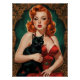 Bring a touch of retro glamor and mystery to your decoration with this magnificent illustration of a red pin-up, holding a black cat. Its captivating look and 1950s-inspired style recall the timeless elegance of vintage. Surrounded by an ornate and refined decor, this work evokes an atmosphere that is both captivating and sophisticated. Ideal for lovers of retro art, cats and elegant and mystical aesthetics!