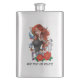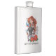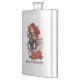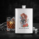 The product is a good size and came exactly as it was pictured. The lid is not attached to the flask, which could be dangerous on drunken nights... The print came out surprisingly well and looks very sharp. Would definitely recommend.