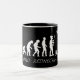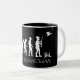 This funny redneck mug features a reverse silhouette of Darwin's theory of evolution, with a redneck twist! The last image however is not a Homo Sapian. It features.... you guessed it! A redneck! He's wearing a ball cap and carrying a gun, while empty beer bottles lay scattered on the ground and a duck flies on by. Typical redneck! Yeehaw!