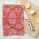 A designer kitchen towel with purple, green lime, and yellow and reds. The red background that can be changed to any colour. You can also add a name to personalise for your family or as a custom gift.