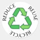 Stickers featuring a recycling symbol in three shades of green and the text "Reduce reuse recycle"