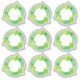 Green enviromental symbol, circle with arrows and the words reduce, reuse, recycle.