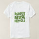 This recycled, reused, and reduced graphic is a perfect way to spread the message of recycling while showing off your sense of style what better way to get the message out than by wearing it on your chest? which means you're doing your part to help save the planet This design is the perfect gift for the eco-friendly family member or best friend. This unique artwork also fits in time for World Environment Day on April 22 and the International Planet Day event celebrated worldwide to pledge support for environmental protection. If you like this artwork, check out similar designs in the Omitay store.