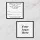 This black and white referral card has display text you can edit. There are lines to share the terms for the referral, the name of the friend and the referrer, business name, business address, and business phone number. All text is black and can be edited. The other side of the card has a display image you can replace with the correct logo. This white card has a black border.