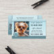 Professional referral business card featuring your own photo and your logo (optional) on a simple blue background. On the back is an optional and easy to customise QR code template (also optional to use). You can keep the photo for a dog walking business if you like, or replace it. This referral card can be customised for any business.