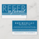 Referral Card, Size: American, 89 mm x 51 mm, Paper: Standard Matte, Corner: Squared