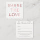 Share the Love in gorgeous soft blush pink shimmering typography. Simple, chic, designer white square referral cards that come in packs of 100. Very affordable at around 25 cents each!