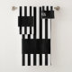 Referee Zebra Stripe Towel Personalised Set. Officials, know which towel is yours on the bench or in the locker room. Stay safe in this Covid era. Add some modern zip to your bath with this referee black and white inspired stripe. The perfect compliment or accessory for any sports themed bathroom. You make the CALL! Visit Bensonhall, on Zazzle, and check out our many unique gifts and sports items.