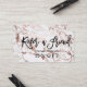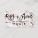 Refer a friend with this modern, stylish makeup referral card with modern hand lettering style brush typography in black on a trendy and elegant faux rose gold foil white marble background.