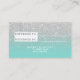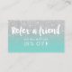Refer a friend with this modern, stylish makeup referral card with modern hand lettering style brush typography in white on a faux silver glitter and turquoise robbin egg blue trendy and elegant background. If you need any customisation, don't hesitate in contacting me